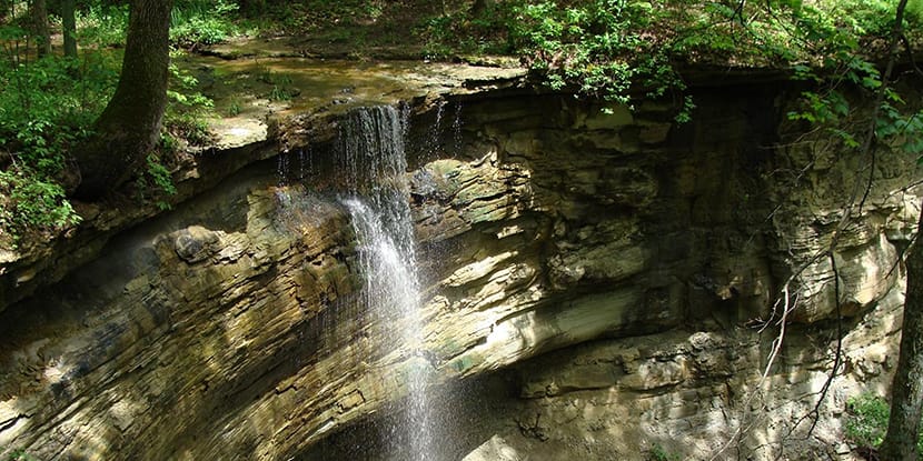 The Fairmount Falls trail is a very short woodland hike, but it offers a one-of-kind view within a Louisville Metro Park. Hikers will find a 70-foot woodland waterfall that, with care, they can walk across at the top. When the water is flowing, great views can be seen from the trail that approaches from the parking area. Hikers who want a longer trek can hike a short in-and-out trail that extends past the waterfall.Â