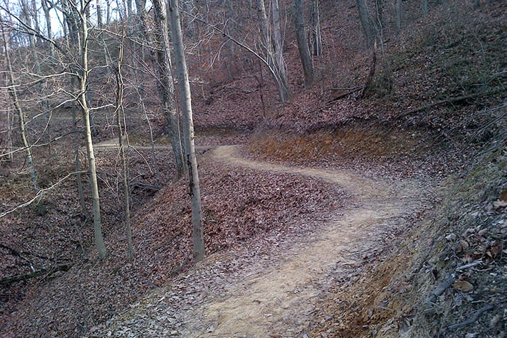 This is considered the middle loop of the system and is easily accessed from the Playground parking lot or the westernmost parking lot. This moderate route follows the middle elevations of the hillsides just below the ridge lines. The trail features frequent but gentle hills and curves along the route making mountain biking very fun.