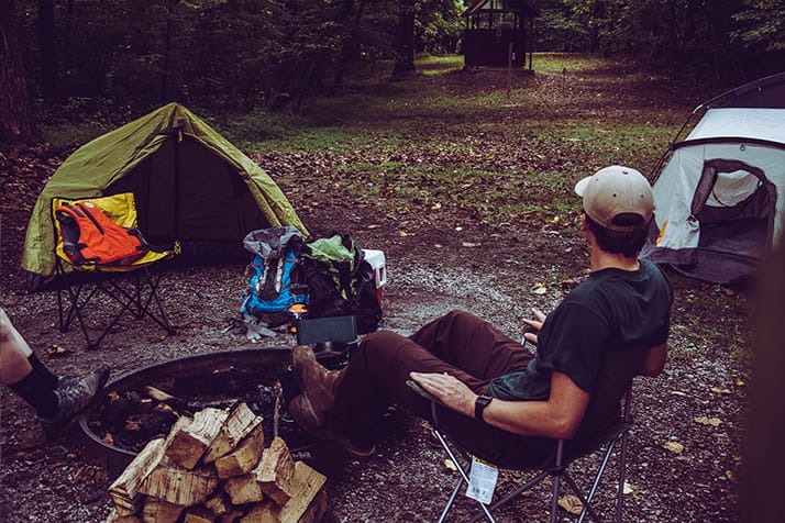 All sites have picnic tables, fire ring, and parking for two vehicles per site. Group Site #1 features a large open area, water, private latrine, and two large picnic tables.